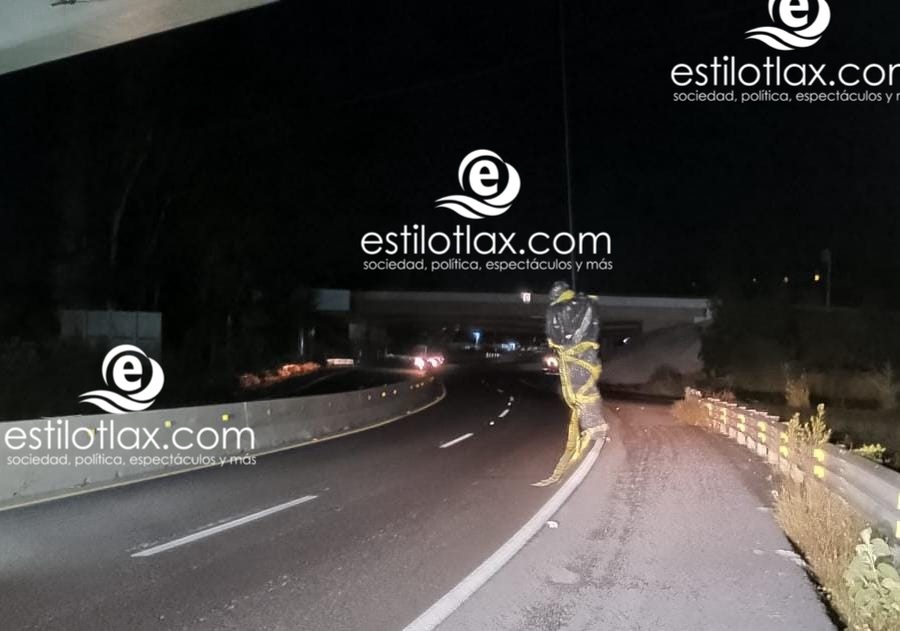 Pasada la medianoche de este domingo, se reportó la localización de un muñeco embolsado, el cual fue colgado desde lo alto del puente de la carretera Federal México-Veracruz, lo cual movilizó a las autoridades.