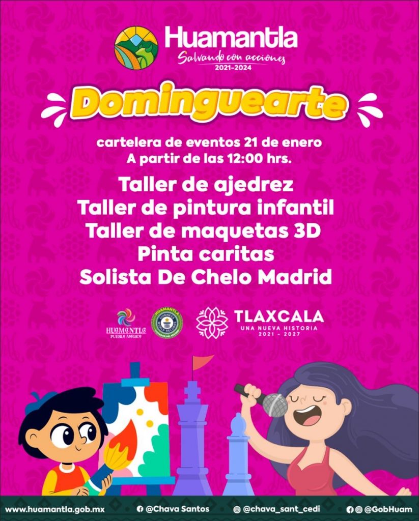 El Gobierno Municipal de Huamantla a través de la coordinación de Cultura, presenta una vez más el programa cultural “Dominguearte», un evento que está diseñado para el disfrute familiar y la alegría de la comunidad.