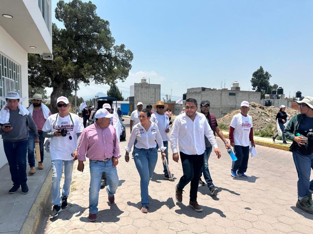 La candidata a Diputada Local Lorena Ruíz García por el distrito 4 con cabecera en el municipio de Apizaco de la coalición Sigamos Haciendo Historia, realizó caminata en la comunidad de Santa Anita Huiloac, en donde se comprometio con las mujeres a seguir trabajando en pro de sus derechos.