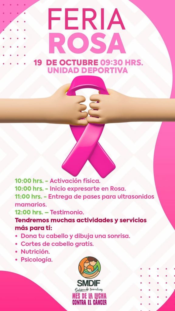 Con el propósito de concientizar a las mujeres sobre la importancia de la detección temprana del cáncer de mama, el Sistema Municipal para el Desarrollo Integral de la Familia (SMDIF) Huamantla, llevará a cabo la Feria Rosa en conmemoración al 19 de octubre.