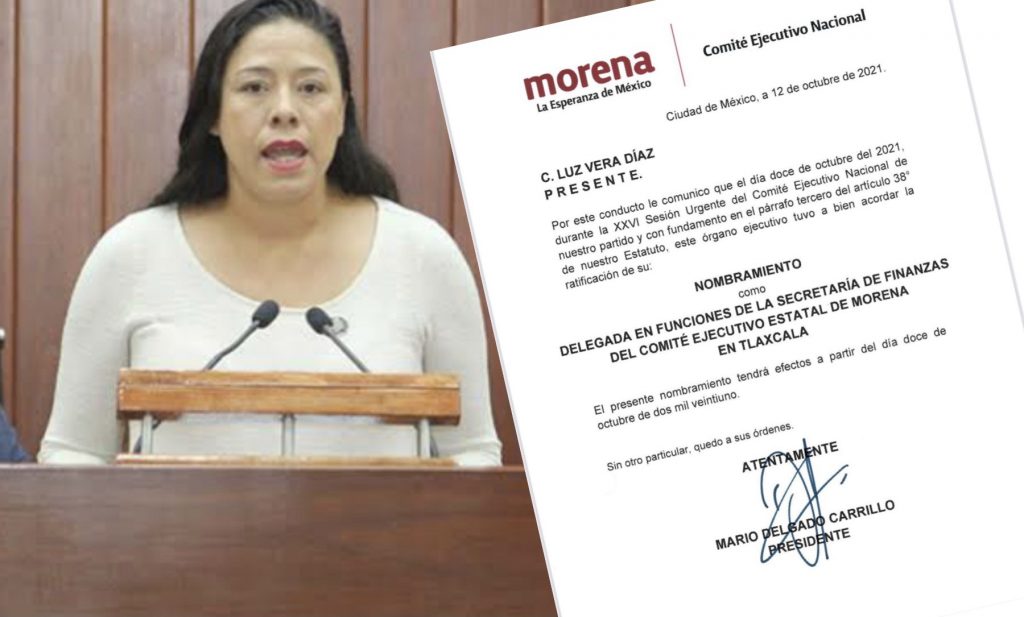 El Comité Ejecutivo Nacional de Morena (CEN) confirmó a Luz Vera Díaz como delegada en funciones de la secretaria de Finanzas del Comité Ejecutivo Estatal de morena en Tlaxcala.