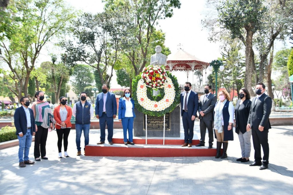 · Autoridades municipales colocaron una ofrenda floral en el monumento del Parque Juárez y montaron una guardia de honor.