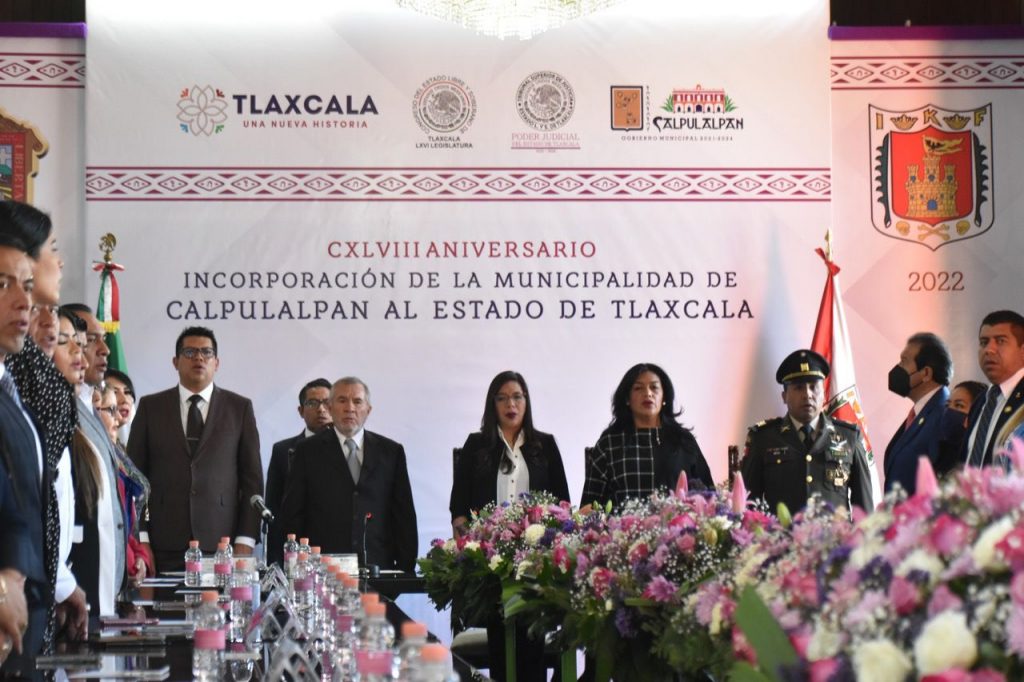 En sesión extraordinaria pública y solemne, los tres Poderes del Estado conmemoraron el CLXVIII aniversario de la incorporación del municipio de Calpulalpan al territorio tlaxcalteca.