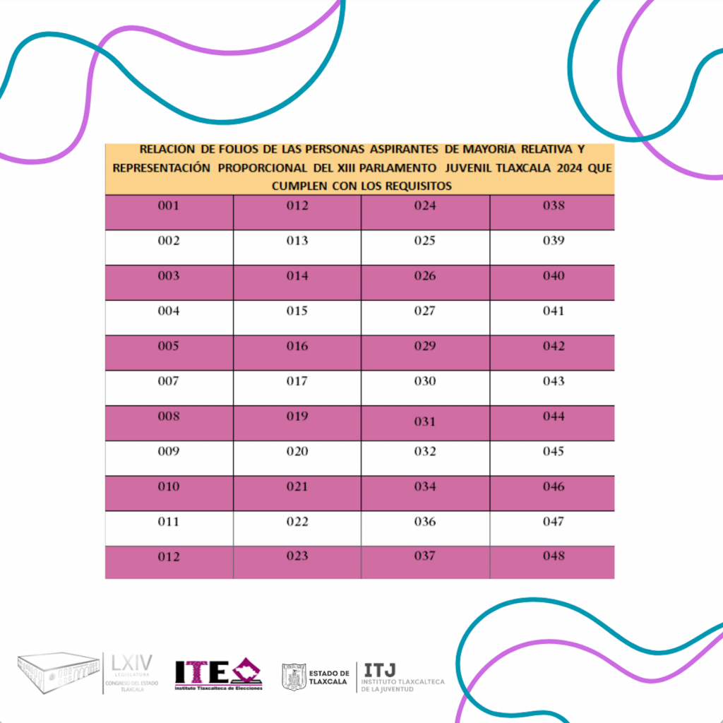 La publicación de los integrantes del Décimo Tercer Parlamento Juvenil Tlaxcala 2024, será el día 25 de julio del presente año en las páginas web oficiales del Congreso del Estado, del Instituto Tlaxcalteca de Elecciones y del Instituto Tlaxcalteca de la Juventud.