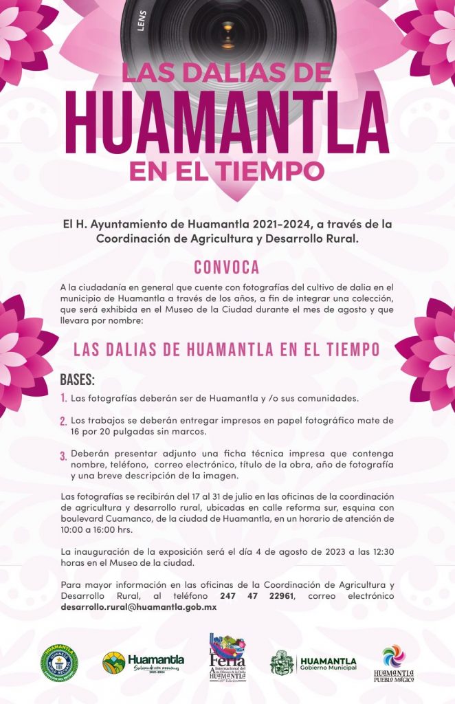 Con el objetivo de integrar una colección histórica de fotografías del cultivo de la dalia en el Pueblo Mágico, el Ayuntamiento de Huamantla a través de la Coordinación de Agricultura y Desarrollo Rural, invita a la ciudadanía a participar en la exposición “Las Dalias de Huamantla en el Tiempo”, que será exhibida en el Museo de la Ciudad durante el mes de agosto.