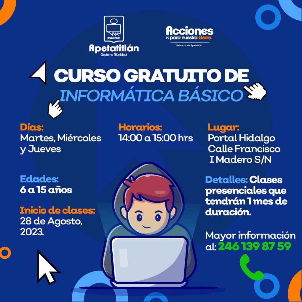 Convencido de que la educación es la mejor inversión para el desarrollo del ser humano, el presidente municipal de Apetatitlán de Antonio Carvajal, Ángelo Gutiérrez Hernández, ha puesto a disposición de la ciudadanía un curso gratuito en materia de informática.