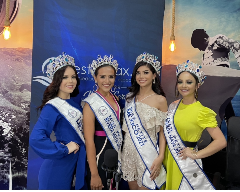 Las dignas representantes son: Katherine Ortiz “Teen Petite México 2021” de Durango, Karen Suárez “Miss Petite México 2021” de estado de Veracruz; Lupita Torres “Miss Petite Riviera Maya” y Carolina Stephanoni “Teen Petite Riviera Maya”
