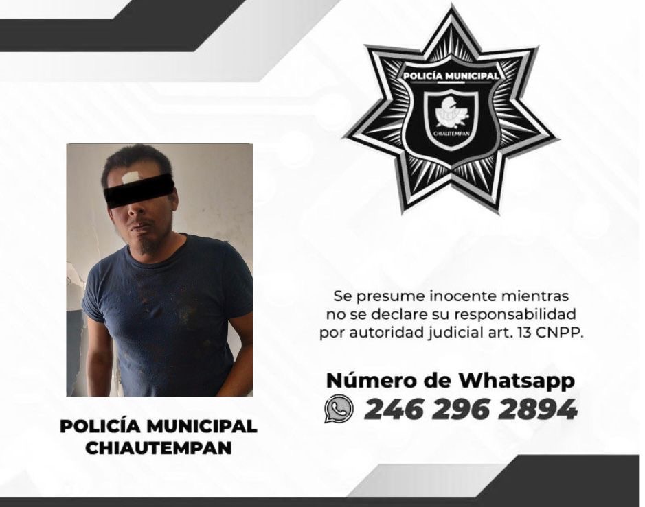 La pronta respuesta de la Dirección de Seguridad Pública Municipal, Vialidad y Protección Civil de Chiautempan, permitió la detención de un sujeto por su presunta participación en el intento de robo de un vehículo y posesión ilegal de arma de fuego.