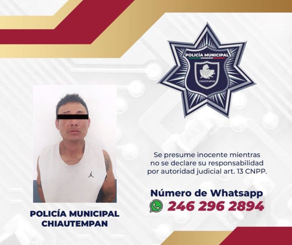 Luego de esto, los elementos policiales trasladaron a la Dirección de Seguridad Pública Municipal, Vialidad y Protección Civil de Chiautempan a quien se identificó como Osvaldo N., de 34 años de edad para los efectos legales correspondientes.