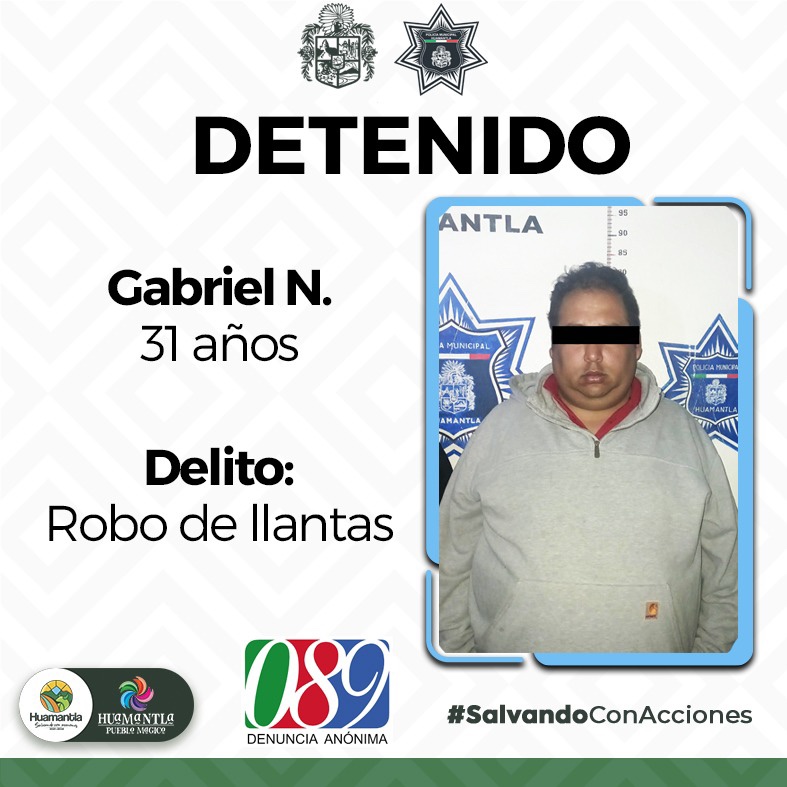 Los hechos ocurrieron cuando una persona se percata de que intentaban quitarle una llanta de su automóvil, por lo que da aviso a la corporación de seguridad de Huamantla, que a través del Grupo de Operaciones Especiales (Gopes), lleva a cabo la persecución dándole alcance y logrando su detención.