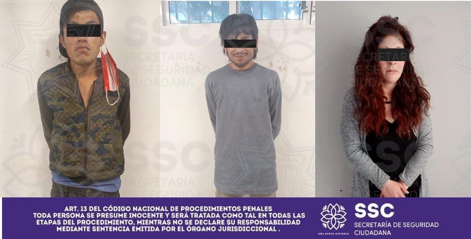Elementos de la Secretaría de Seguridad Ciudadana (SSC) aseguraron a tres personas por su presunta responsabilidad en el delito de allanamiento de morada y robo.