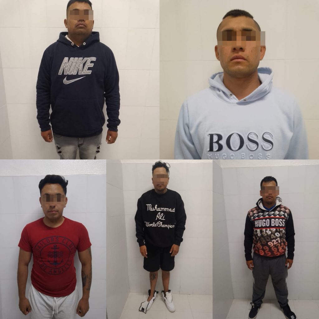 Los detenidos son Josef Edwin N. de 26 años con domicilio en Guardia, Brandon N., de 29 años con domicilio en Xitototla, David N., de 33 años con domicilio en la Sección Quinta, Ernesto N., de 28 años con domicilio también en la Sección Quinta, todos los antes mencionados vecinos de Zacatelco, y Ramiro N., de 41 años originario de la Sección Primera de Santo Toribio Xicohtzinco.