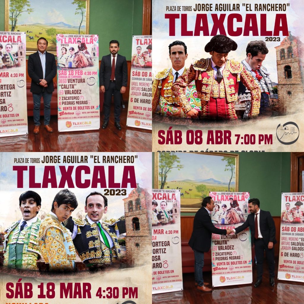 El presidente municipal de Tlaxcala, Jorge Corichi, y el director operativo de la empresa Feria Toro, Othón Ortega Salinas, develaron las combinaciones de lo que será el resto del serial taurino que inicia este sábado 28 de enero en la emblemática Plaza de Toros Jorge Aguilar, “El Ranchero”.