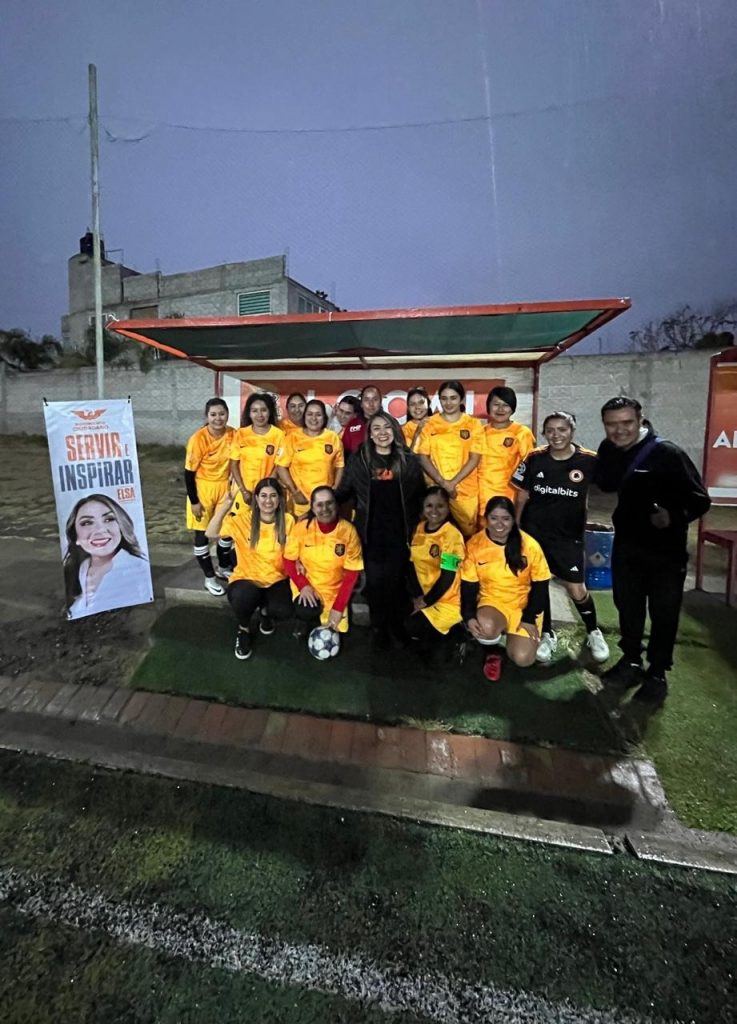 Ante madres jóvenes y entusiastas, que formaron un equipo de fútbol femenil, para practicar, convivir y fomentar el deporte, Elsa Cordero les felicitó por su iniciativa y les comentó como desde el Senado legislará para reestructurar el Sistema Nacional de Cultura Física y Deporte (SINADE) con un enfoque orientado a la promoción de las diversas actividades deportivas y al apoyo a las y los deportistas.