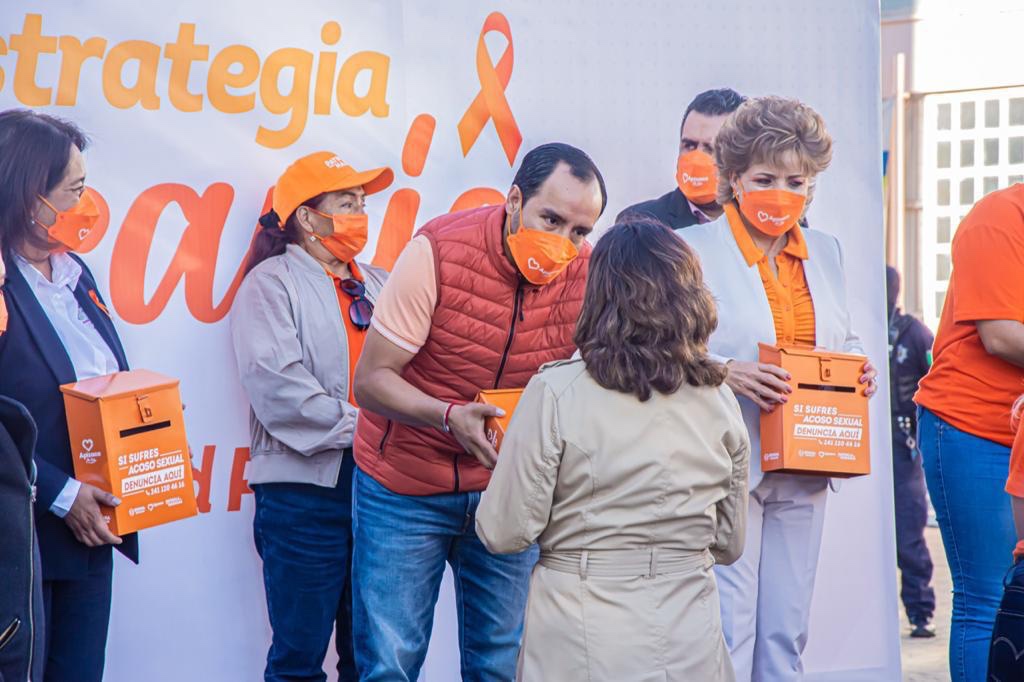 • Buzón naranja: colocados en primarias, secundarias y preparatorias del municipio en donde la comunidad estudiantil podrá realizar sus denuncias anónimas o no.
