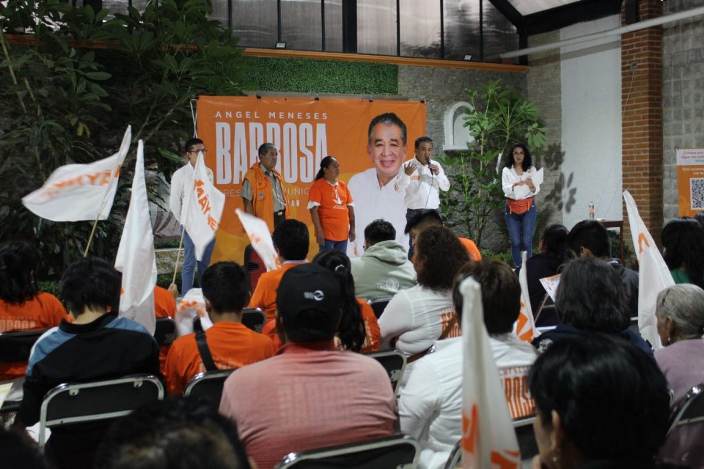 A unos días de concluir las campañas constitucionales para elegir presidente municipal en Chiautempan, Ángel Meneses Barbosa, candidato de Movimiento Ciudadano, recibió el respaldo de vecinos de las colonias El Alto e Industrial, esto durante las reuniones vecinales en que le reciben para conocer los compromisos que firmó ante notario público para garantizar su cumplimiento.