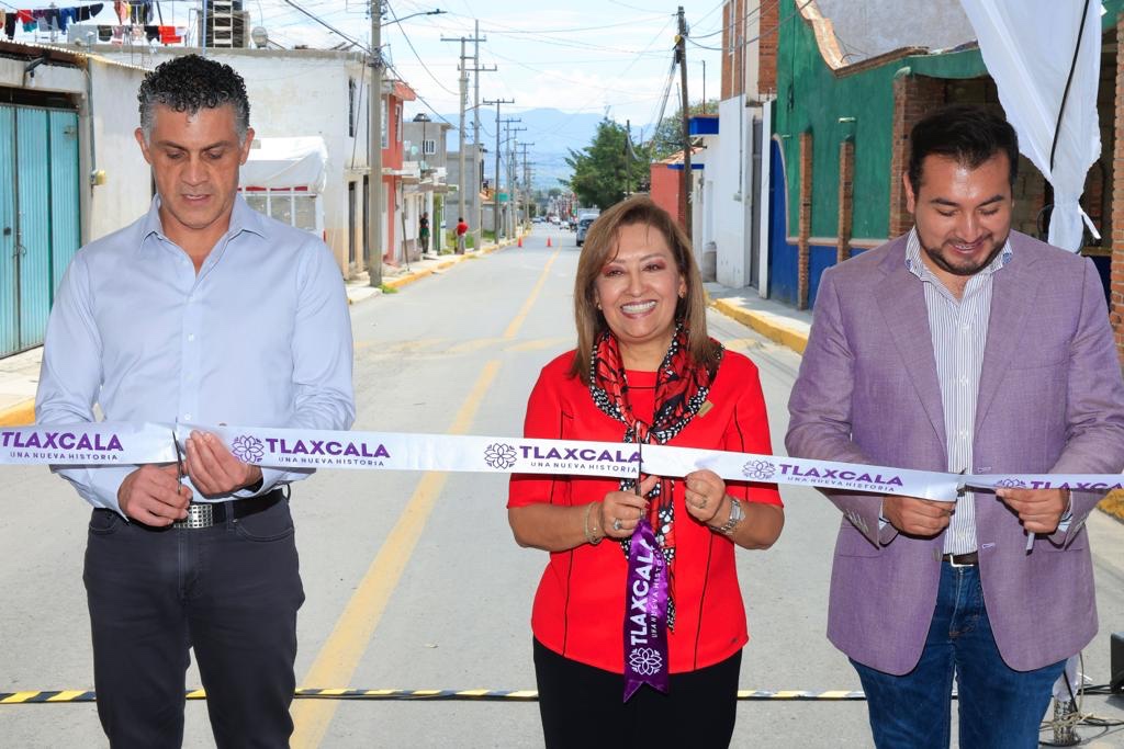 La gobernadora Lorena Cuéllar Cisneros entregó obras públicas en los municipios de Apizaco y Huamantla, las cuales consistieron en la pavimentación de dos calles y la instalación de servicios básicos en beneficio directo de más de 23 mil habitantes.