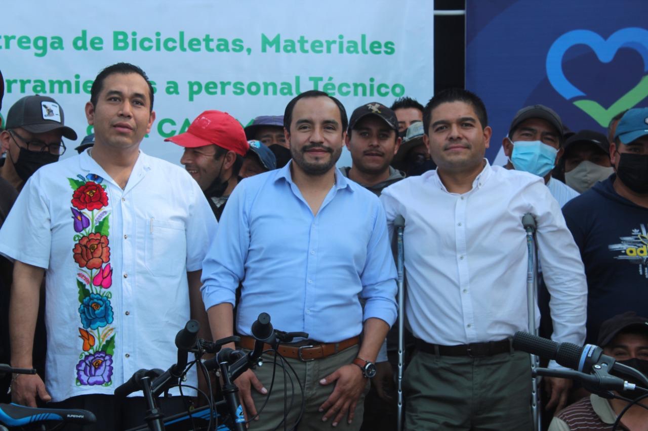 Después de 14 años de no recibir equipamiento, personal de la Comisión de Agua Potable y Alcantarillado de Apizaco (CAPAMA), recibieron bicicletas, materiales y herramientas de manos del Presidente Municipal, Pablo Badillo.
