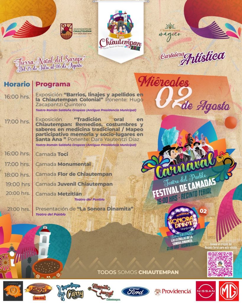 Como parte de las actividades de promoción cultural y artística, este miércoles habrá un Festival de camadas en la Feria de Chiautempan 2023, en el Teatro del Pueblo ubicado en el Recinto Ferial.