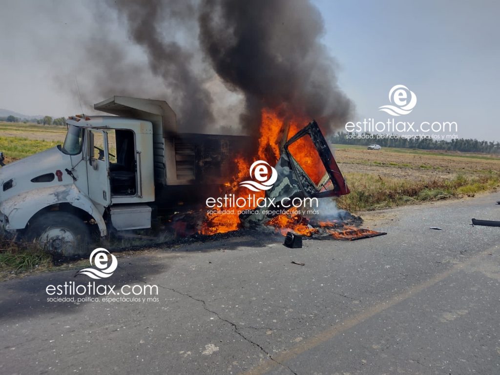 Un aparatoso choque vial ocurrido entre un vehículo particular y un camión tipo tortón dejó como saldo rojo a una persona muerta (calcinada) entre los limítes de Nativitas y Tetlatlahuca.