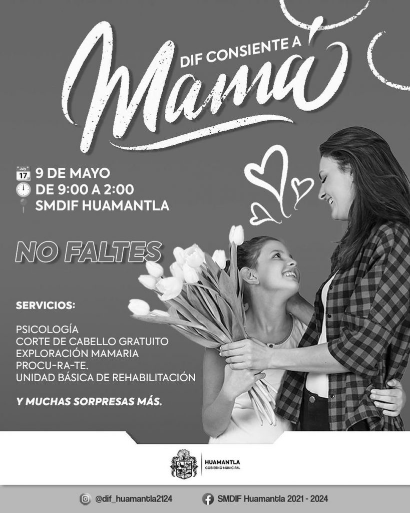 En el marco del Día de las Madres, el Sistema Municipal para el Desarrollo Integral de la Familia (SMDIF) de Huamantla, invita a todas las madres de familia a participar en la Feria de servicios gratuitos.