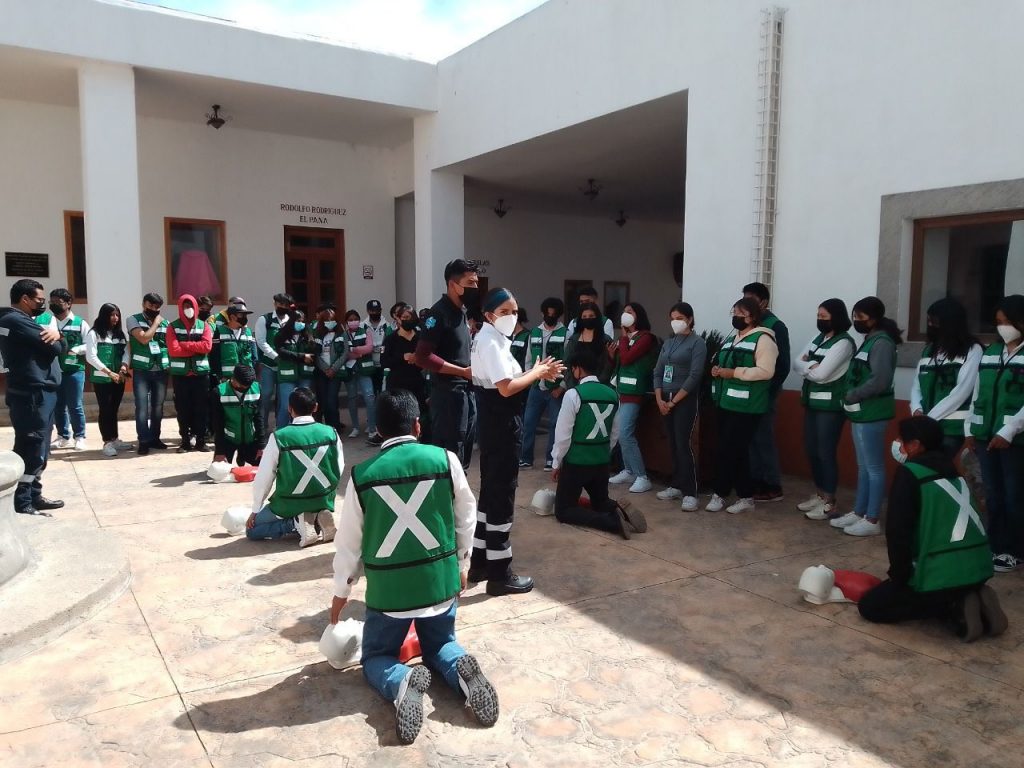 Personal de Protección Civil de Huamantla instruyó a 70 jóvenes sobre cómo realizar vendajes efectivos, desobstrucción de vías aéreas y llevaron a cabo la Maniobra de Heimlich, así como la técnica de reanimación cardiopulmonar para adultos.