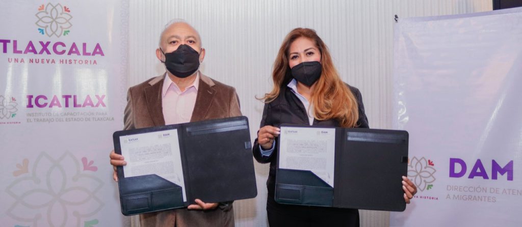 Migrantes tlaxcaltecas en retorno podrán obtener el Reconocimiento Oficial de la Competencia Ocupacional (ROCO) y acreditar su experiencia laboral adquirida en los Estados Unidos de América (EUA), además de obtener la capacitación técnica para su reinserción laboral, gracias al convenio de colaboración que firmaron el Instituto de Capacitación para el Trabajo del Estado de Tlaxcala (Icatlax) y la Dirección de Atención a Migrantes (DAM).