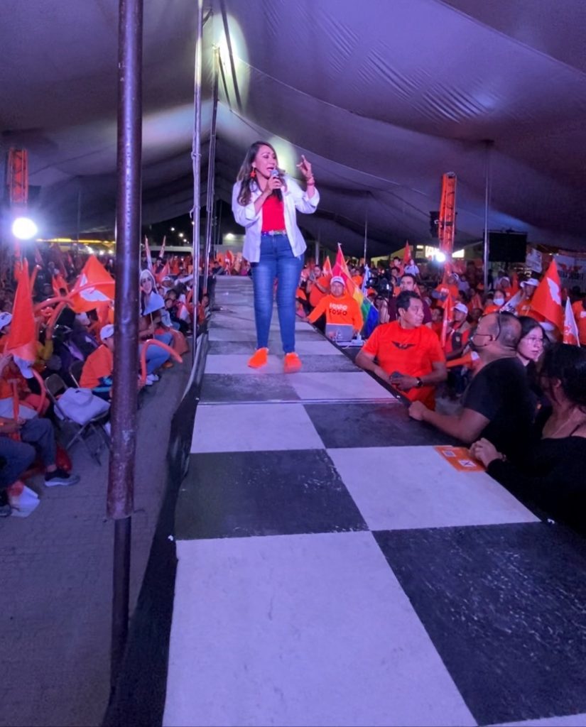 Entre porras  y aplausos la candidata acompañó a su cierre a la candidata a la presidencia municipal Diana Sophia Juárez , al candidato a la Diputación Local Guillermo Hueyotlipan, a su compañero de fórmula Poncho González, a la candidata a la Diputación Federal por el Distrito 3 Rosa Isela Sánchez y a las y los presidentes de comunidad de San Pablo del Monte.