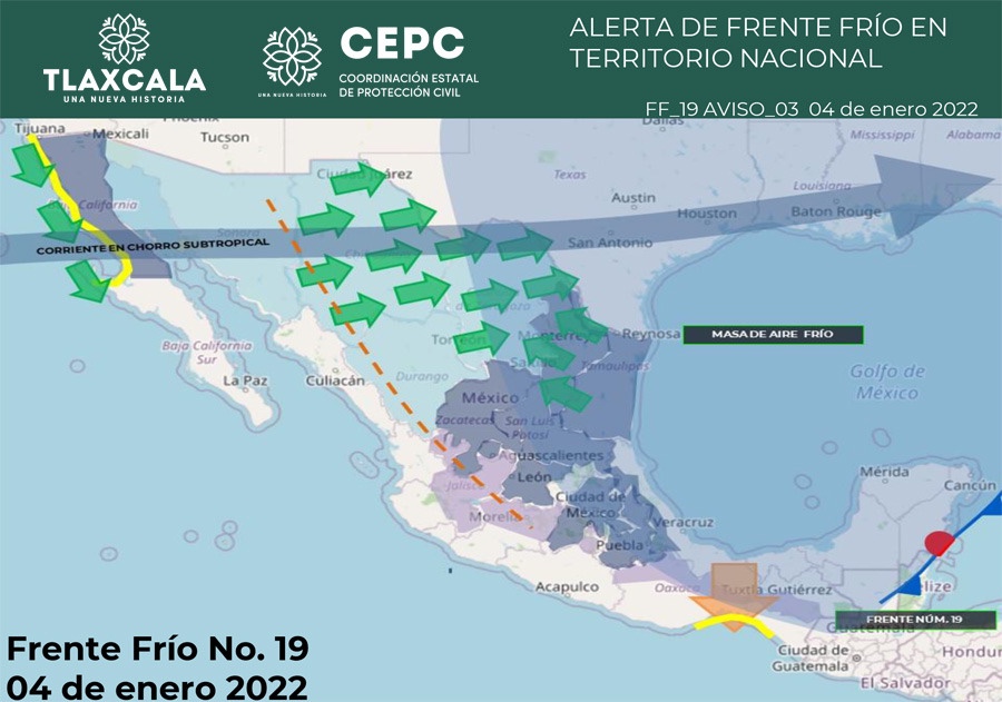 El fenómeno hidrometeorológico del frente frío número 19 se extenderá con características de estacionario, lo que dará paso a un ambiente frío a muy frío con heladas al amanecer.
