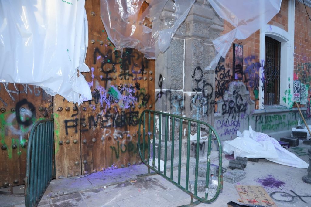 Nunca existió represión por parte de las autoridades, los elementos de seguridad pública protegieron la integridad física de las mujeres y únicamente intervinieron cuando las inconformes intentaron derribar la puerta de Palacio de Gobierno; no existe reporte de lesionadas, denuncias de agresiones o detenciones de mujeres por algún delito, a pesar de los actos vandálicos.