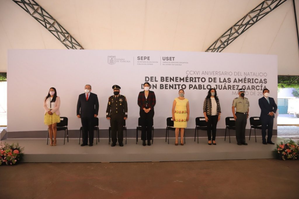 En la explanada del Domo Blanco del Centro Expositor de la ciudad capital y acompañada de los representantes de los poderes Judicial y Legislativo, la funcionaria estatal resaltó que Juárez García fue un hombre de principios, de alta calidad moral y ética con gran sentido de honorabilidad, amor y lealtad a la patria, “Benito Juárez fue un gran mexicano, un hombre cabal”.