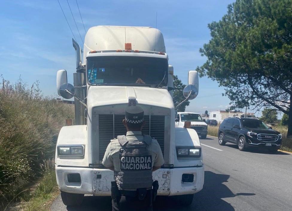 En inmediaciones del municipio de Tenancingo, Tlaxcala, elementos de la Guardia Nacional recuperaron un tractocamión, con reporte de robo que transportaba varilla.