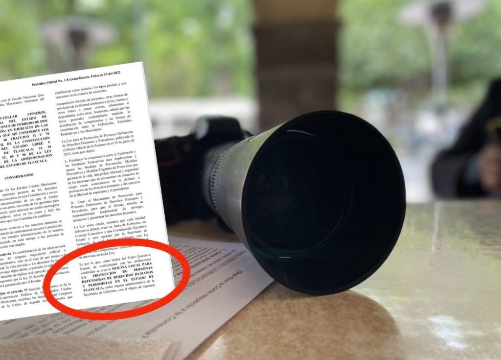 El pasado 15 de febrero fue publicado en el Periódico Oficial del Gobierno del Estado de Tlaxcala, en el cual mandata la creación y funcionamiento de la Oficina Local para la Protección de Personas Defensoras de Derechos Humanos y Periodistas en el estado de Tlaxcala.