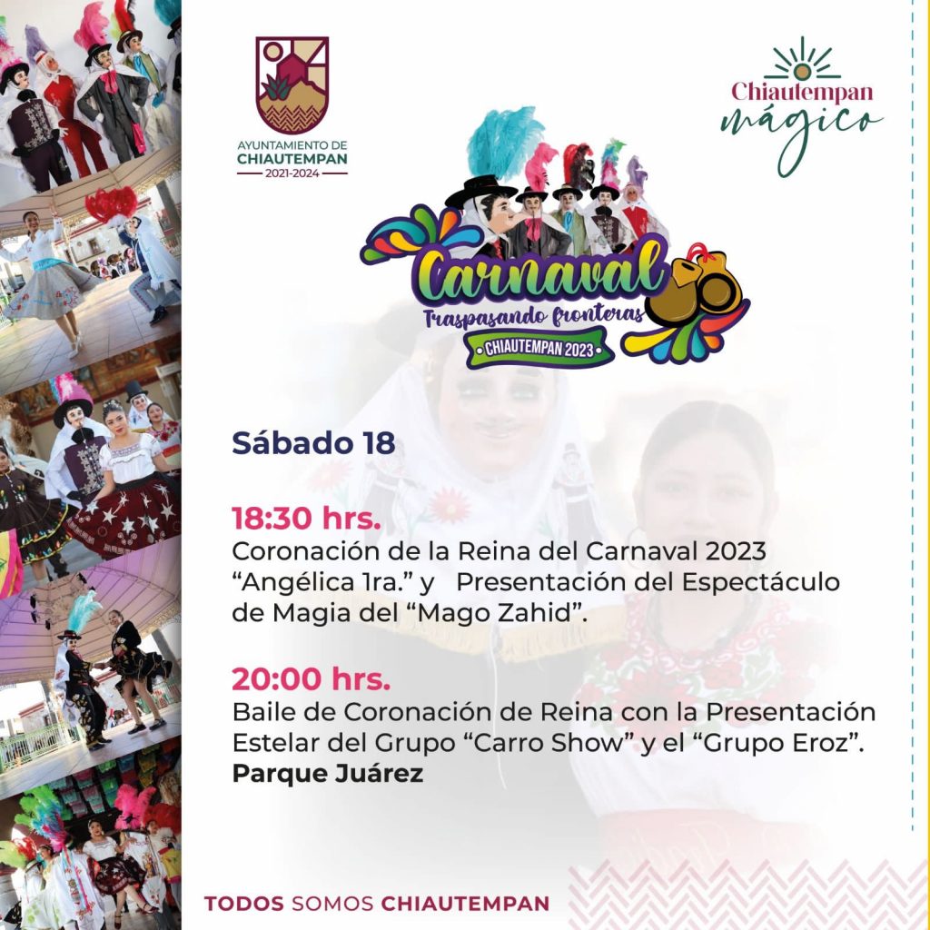 Con el propósito de preservar las costumbres y tradiciones, el Ayuntamiento de Chiautempan y el Comité Organizador del Carnaval, invita a la ciudadanía en general a la coronación de la Reina del Carnaval 2023, Angélica 1ra.