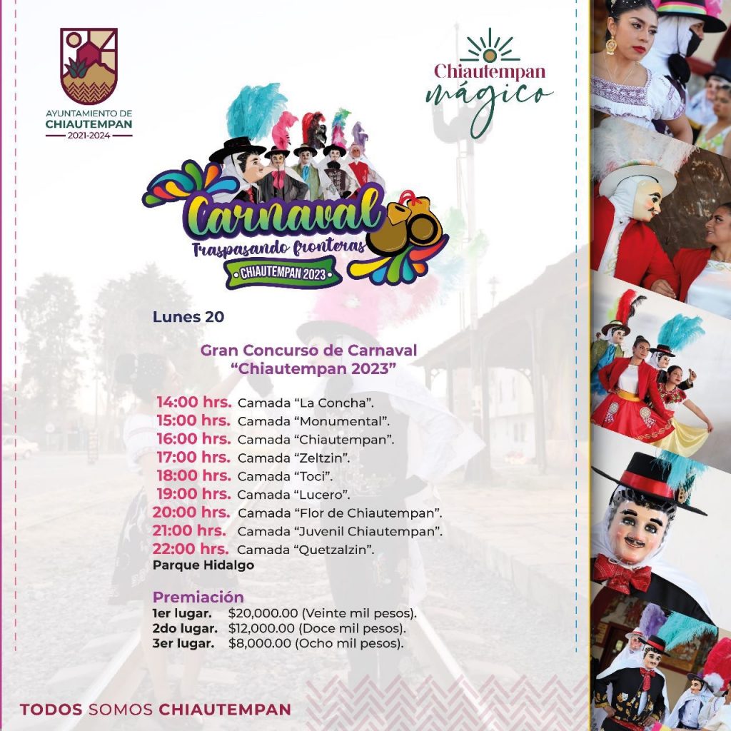 El Ayuntamiento de Chiautempan y la Comisión Organizadora, invitan a la sociedad en general a disfrutar del “Gran Concurso de Camadas”, que dará inicio este lunes 20 de febrero en punto de las 14:00 horas, en el parque Hidalgo.