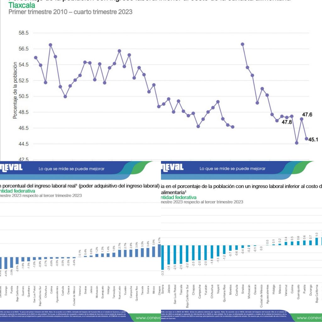 Cabe mencionar que los resultados del Índice de la Tendencia Laboral de la Pobreza (ITLP) del Coneval arrojaron también que el ingreso laboral real per cápita en Tlaxcala, derivado de la actividad laboral de la población ocupada, aumentó 3.3% en dicho periodo, lo que indica una mejora en el poder adquisitivo del ingreso laboral en la entidad.
