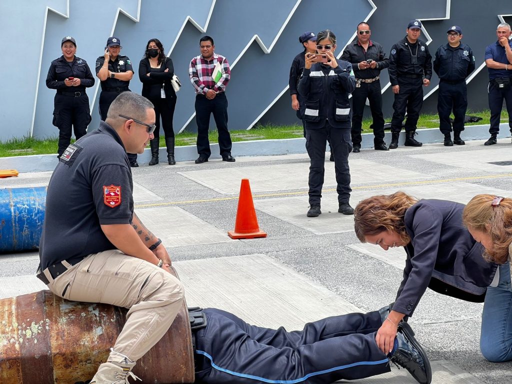 Los elementos policiales fueron instruidos en el correcto uso y manejo de extintores, así como en el control de incendios y rutas de evacuación en casos de emergencia como incendios o sismos, donde personal de la CEPC capacitó a los elementos en la búsqueda y rescate de personas.