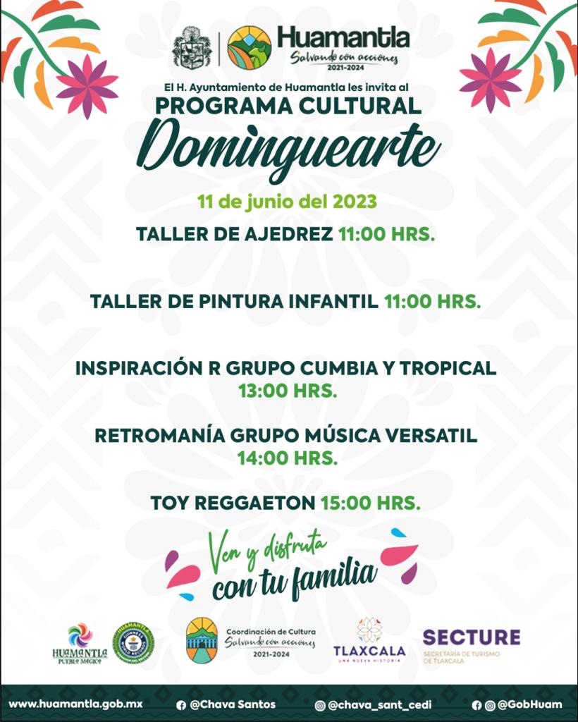 Como parte de las actividades culturales de cada domingo, se llevará a cabo una edición más de “Dominguearte”, un programa que impulsa el gobierno municipal de Huamantla, mismo que se ha convertido en el escenario principal para artistas y grupos musicales.