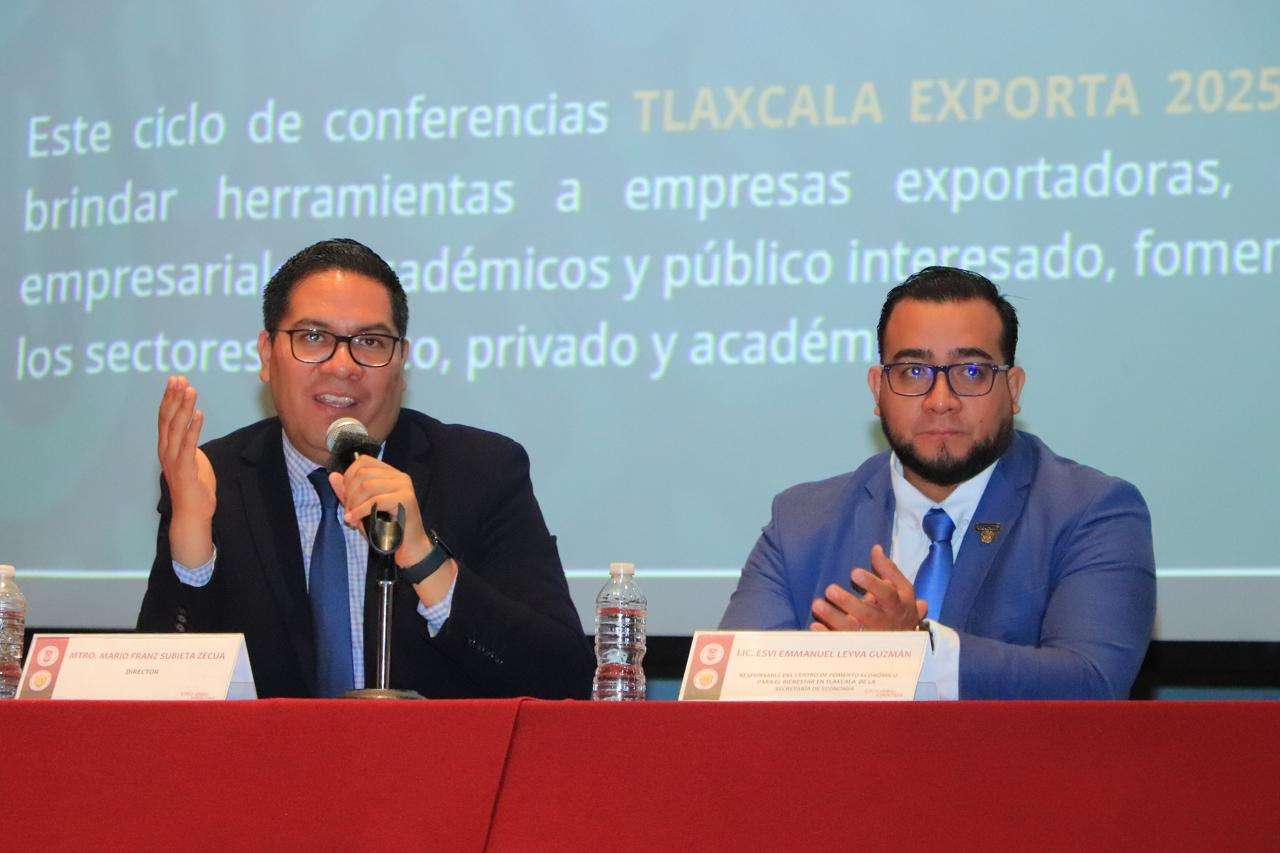 Con el firme compromiso de impulsar el desarrollo económico regional, el Centro de Fomento Económico para el Bienestar en Tlaxcala, de la Secretaría de Economía, y la Facultad de Ciencias Económico Administrativas de la Universidad Autónoma de Tlaxcala (FCEA-UATx) organizaron el 𝐏𝐫𝐢𝐦𝐞𝐫 𝐂𝐢𝐜𝐥𝐨 𝐝𝐞 𝐂𝐨𝐧𝐟𝐞𝐫𝐞𝐧𝐜𝐢𝐚𝐬: 𝐓𝐥𝐚𝐱𝐜𝐚𝐥𝐚 𝐄𝐱𝐩𝐨𝐫𝐭𝐚 𝟐𝟎𝟐𝟓 en el Teatro Universitario.