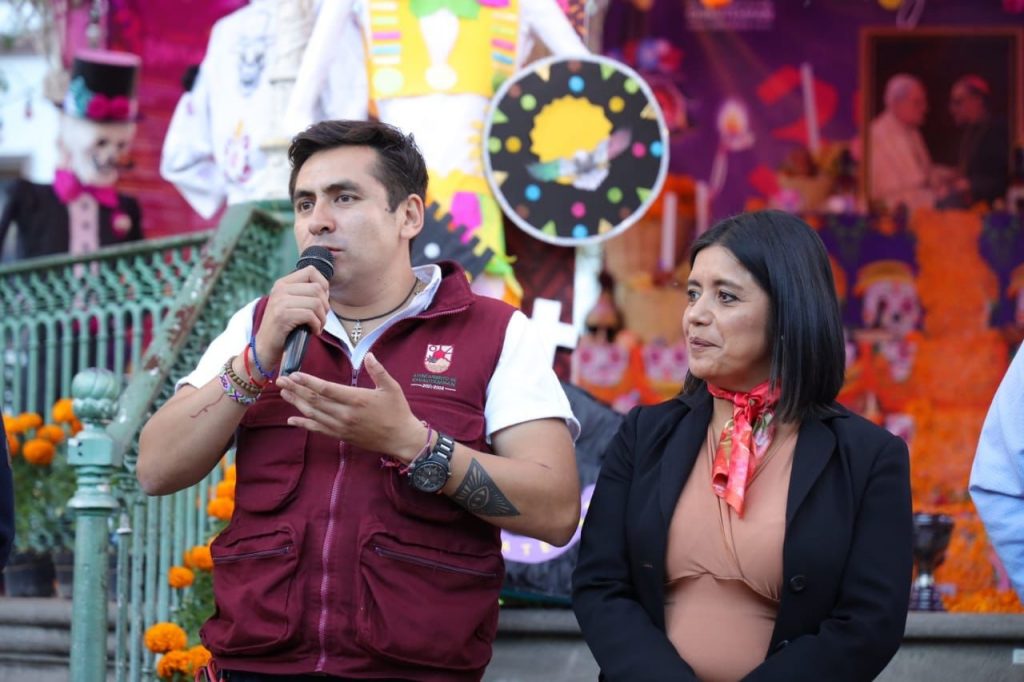 Marcos Brian Quiroz Vázquez, Director de Gestión y Recaudación en representación del Presidente Municipal, Gustavo Jiménez Romero resaltó el gran trabajo del área de la Dirección de Protección de Patrimonio Cultural para realizar esta magna obra en memoria de nuestros fieles difuntos.