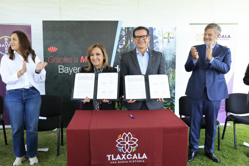 La gobernadora Lorena Cuéllar Cisneros inauguró la ampliación y remodelación de la planta Bayer Tlaxcala, ubicada en la comunidad Villalta del municipio de Ixtacuixtla, y además firmó convenio de colaboración para capacitar a campesinos sobre prácticas agrícolas sustentables.
