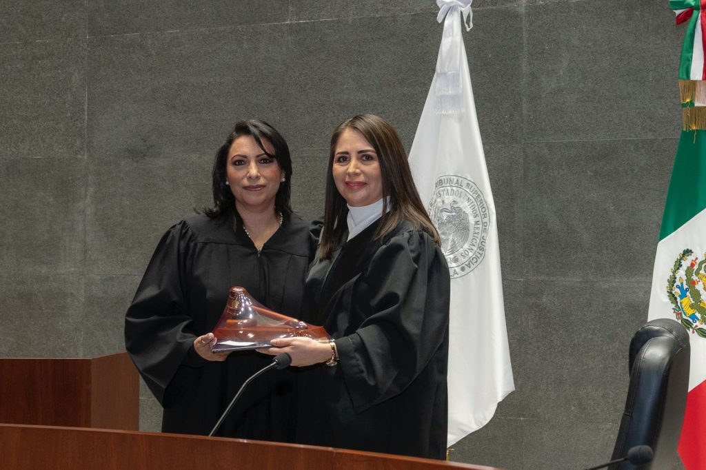 La magistrada presidenta le manifestó que este día asume uno de los más altos honores de las y los profesionales del derecho que supone grandes retos, pero sobre todo grandes responsabilidades, pero dijo estar segura que dará muestra de su profesionalismo y responsabilidad, pero, sobre todo de su humanismo como impartidora de justicia.