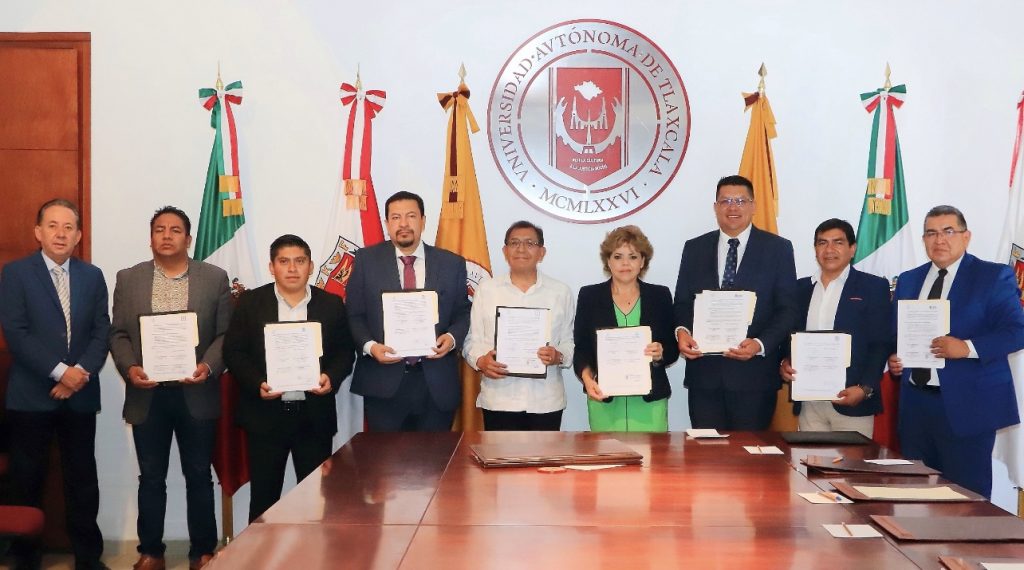 El Doctor Serafín Ortiz Ortiz, Rector de la Universidad Autónoma de Tlaxcala (UATx), signó sendos convenios específicos de colaboración con los ayuntamientos de Apizaco, Calpulalpan, Xiloxoxtla, Tocatlán, Ixtacuixtla y Xaltocan, con el objetivo de que los estudiantes de la Facultad de Derecho, Ciencias Políticas y Criminología, realicen su servicio social comunitario y prácticas profesionales en dichas instancias, en evento efectuado en la sala de junta de rectoría.