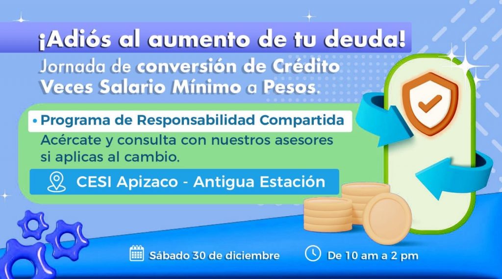 El Instituto del Fondo Nacional de la Vivienda para los Trabajadores (Infonavit) llevará a cabo una nueva jornada especial de conversión de créditos de Veces Salario Mínimo (VSM) a Pesos, con el programa denominado Responsabilidad Compartida.