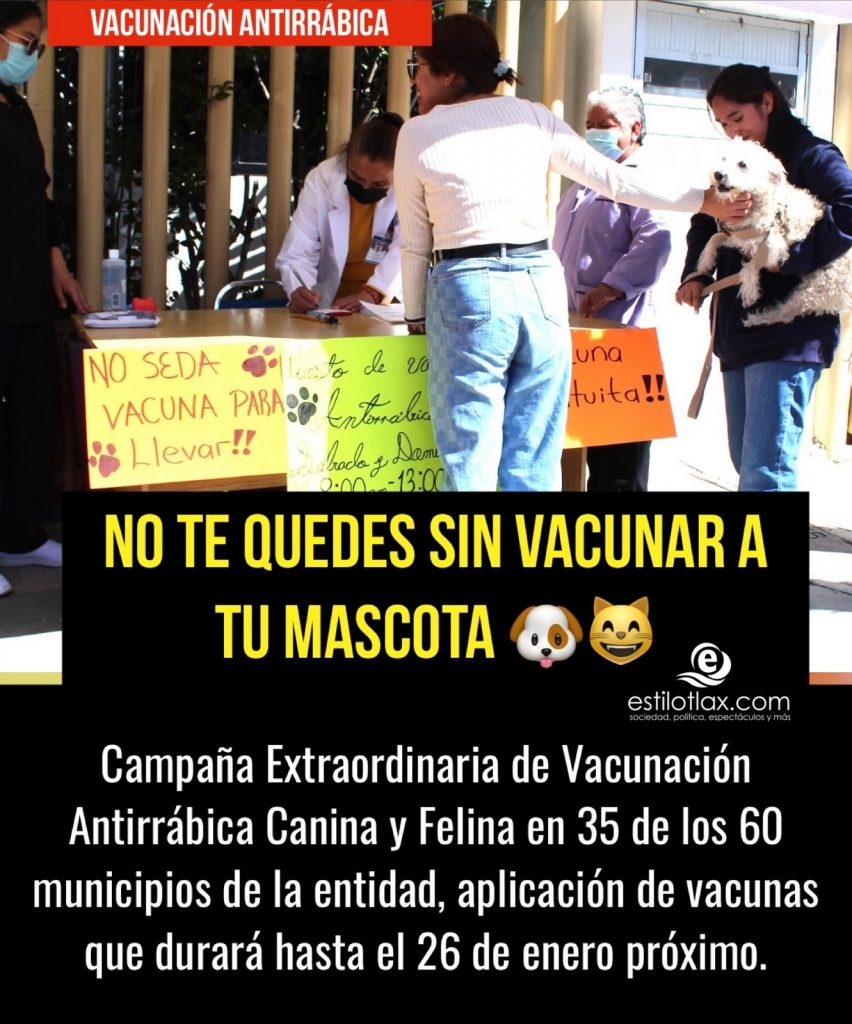 El Sector Salud de Tlaxcala realiza la Campañas de Vacunación Antirrábica Canina y Felina para prevenir contagios de rabia en perros y gatos mediante vacunas que disminuyen considerablemente la transmisión del virus.