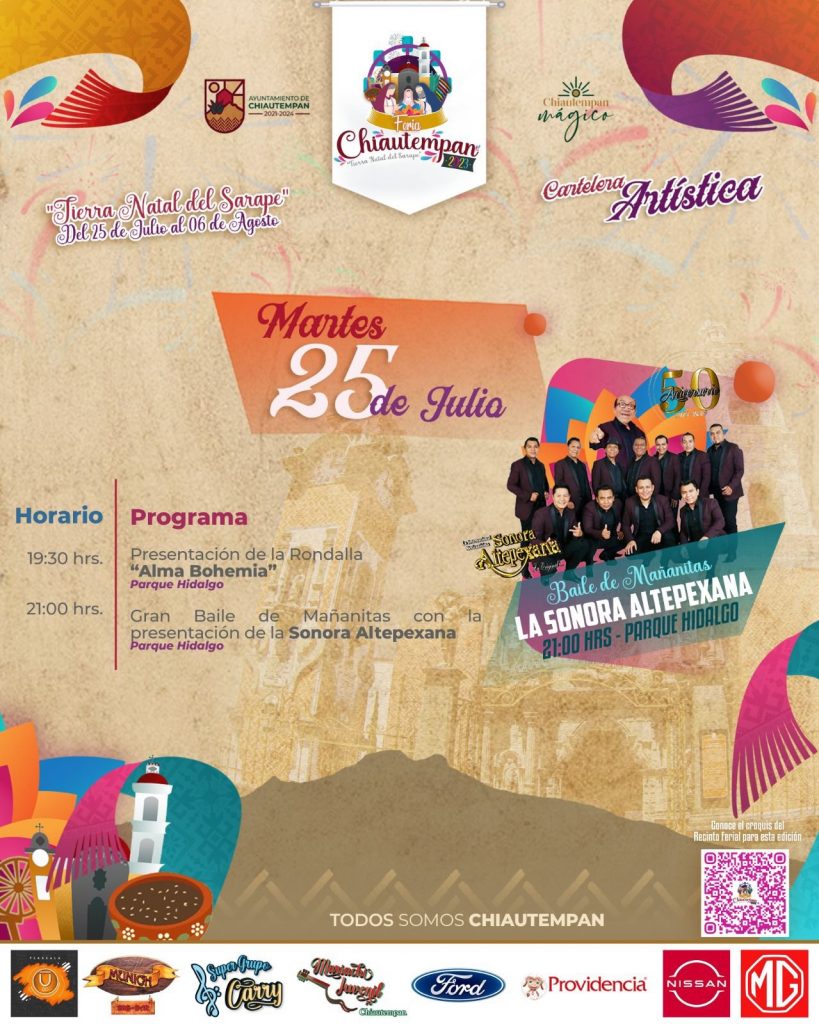 El Ayuntamiento y la Parroquia de Chiautempan invitan a la población a acudir a estos dos eventos que marcan el inicio de la Feria 2023 «Tierra Natal del Sarape» que concluirá el 6 de agosto.