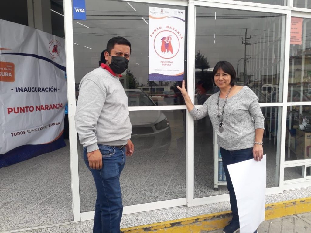 El Ayuntamiento de Chiautempan a través del Instituto Municipal de la Mujer (IMM) y en coordinación con el Instituto Estatal de la Mujer (IEM), instalaron seis «Puntos Naranjas» en diferentes comercios del municipio.