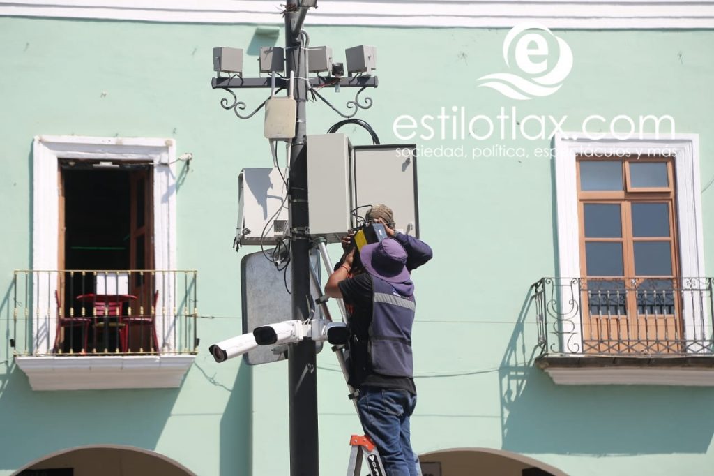 En la plaza de la Constitución de Tlaxcala se puede observar que trabajadores contratados por el gobierno del estado, están colocando cámaras de video vigilancia, Implementando la mejor y más actual tecnología para reconocimiento facial, este sistema permitirá identificar inmediatamente a cualquier delincuente con proceso judicial pendiente. Cuando las cámaras capturen su rostro, una alerta se enviará de inmediato al C5i para su pronta captura.