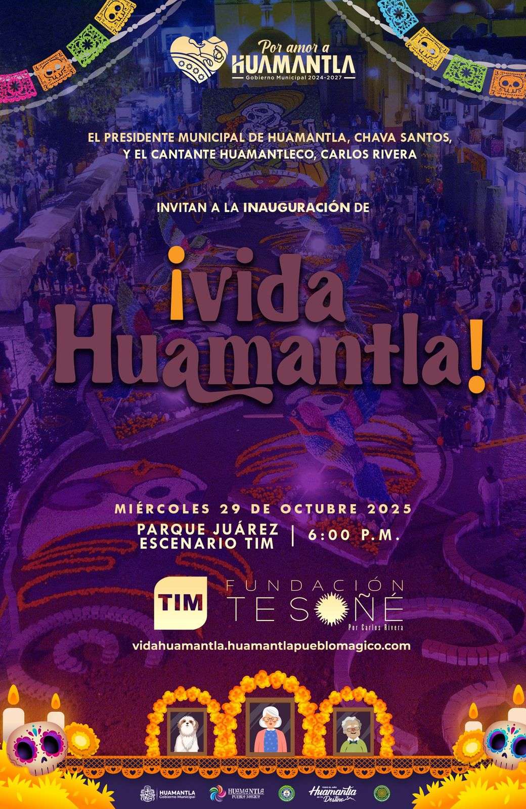 “Vida Huamantla” surge como una iniciativa del presidente municipal Chava Santos, y se consolida gracias a la colaboración del cantante y orgullosamente huamantleco Carlos Rivera, con el propósito de ofrecer un espacio que reúna el arte, la cultura, la música y nuestras tradiciones para fortalecer el sentido de identidad, pertenencia y memoria colectiva.