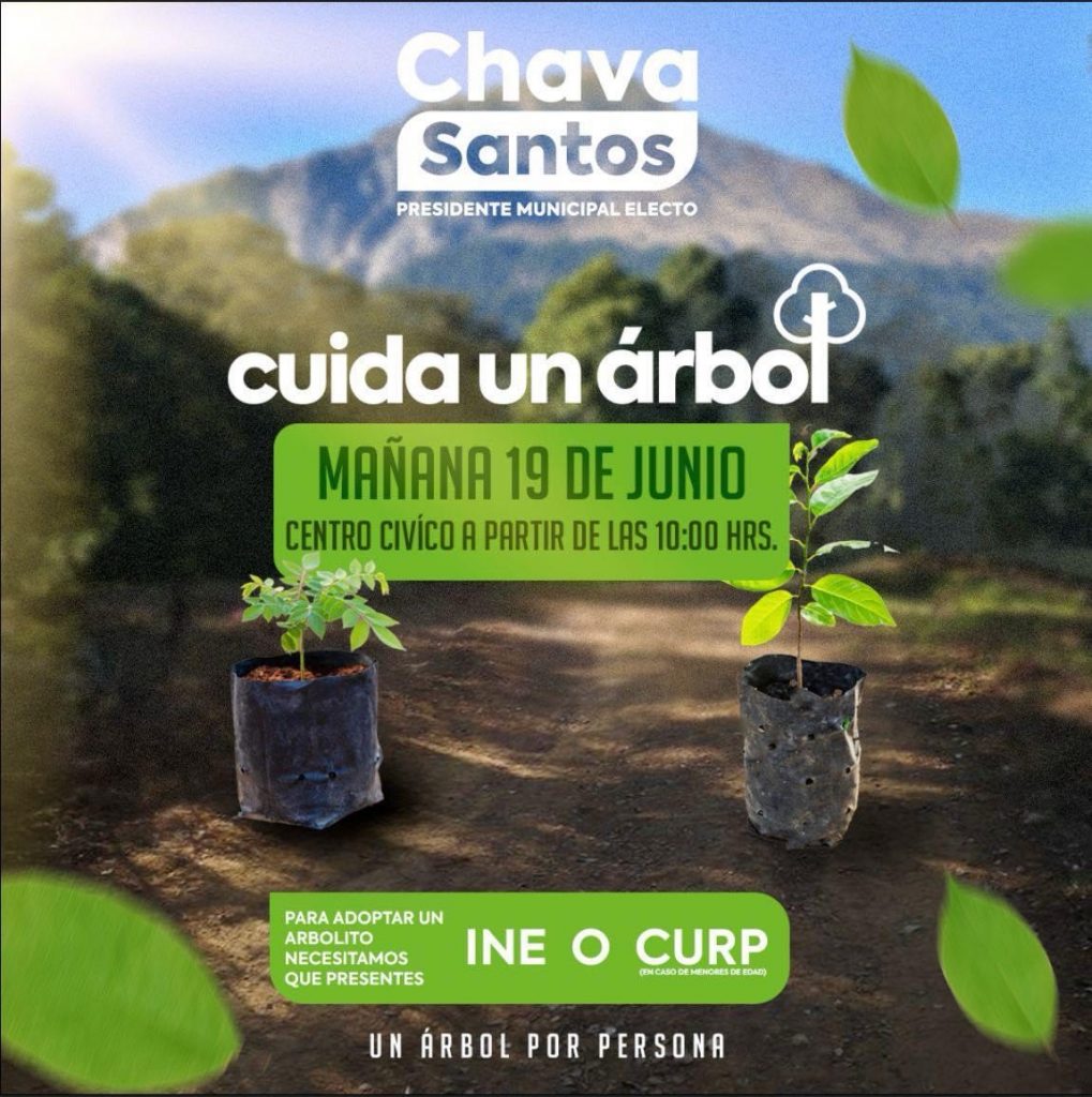 El presidente electo de Huamantla por el Partido Verde, Salvador Santos Cedillo, anunció en sus redes sociales en días pasados una donación de arbolitos que finalmente se llevará a cabo este miércoles 19 de junio, en el Centro Cívico de Huamantla a partir de las 10:00 horas.